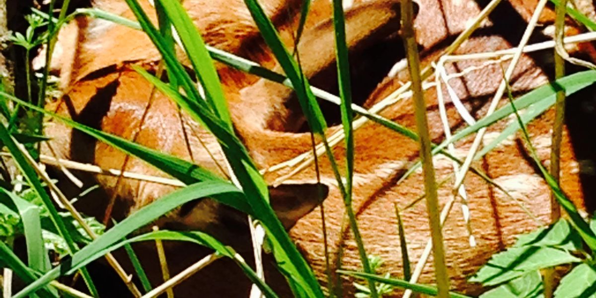 Until the crying stopped. And time went on. And eventually there I was in the lower field. And there she lay in a wet part of the woods barely able to move, injured, with other signs that I won’t detail here that she was in a desperate state.
